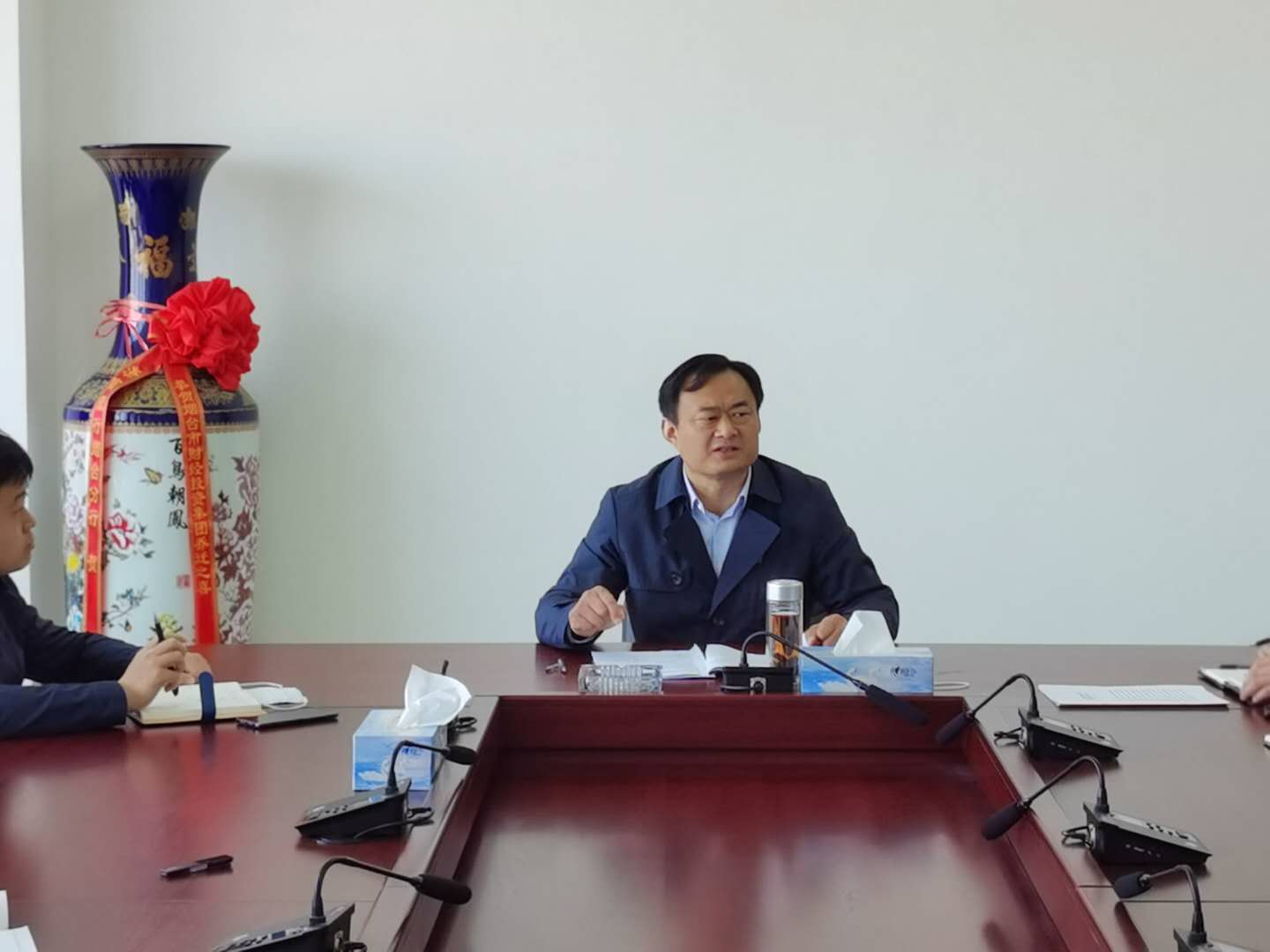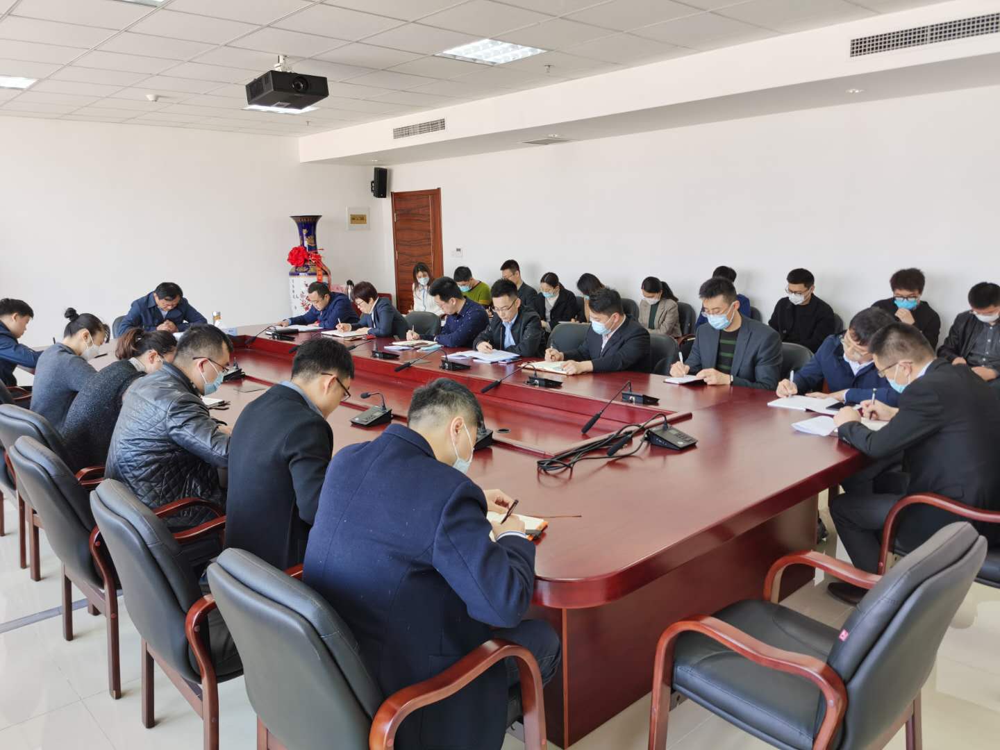 4月28日上午,财金集团召开全体会议,学习传达市属国有资本投资运营公司高质量发展会议精神,董事长刘海彬作重要讲话,集团领导班子成员及各部室、子公司全体人员参加会议。
