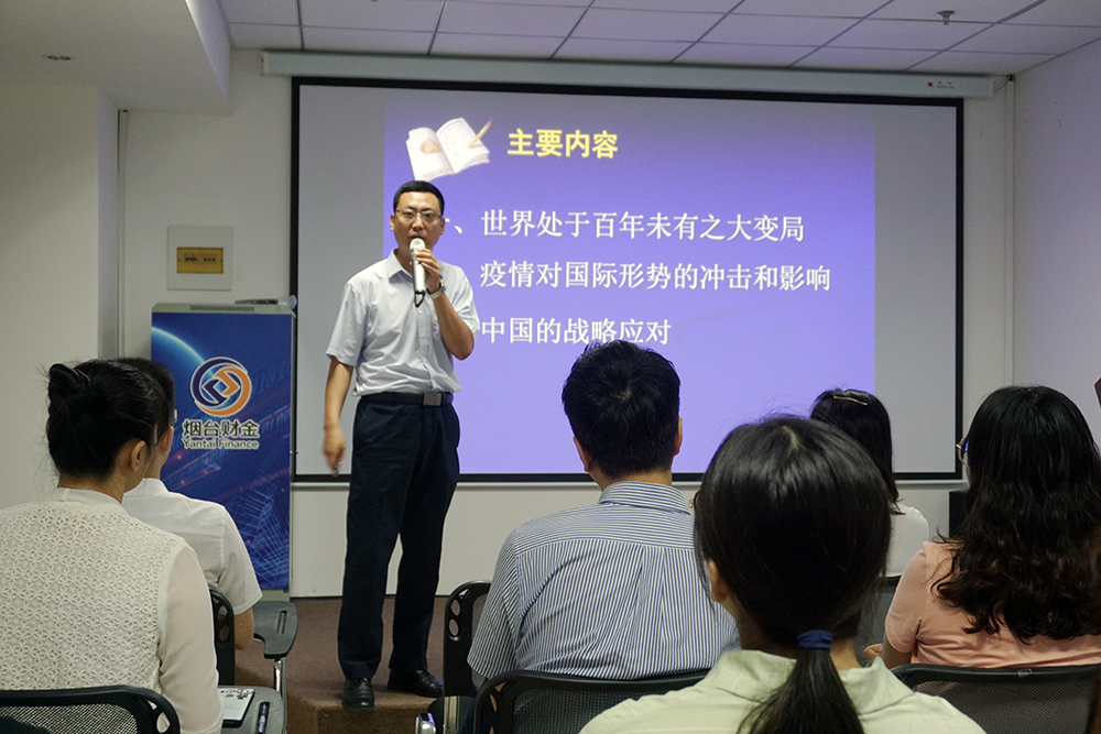 为助力集团干部职工拓展视野,增长知识,进一步认清当前国内国际形势,担当使命,自觉应对风险挑战,7月23日上午,集团举办了第三期“财金大讲堂”,开展国情党情和形势政策教育,邀请到中共烟台市委党校哲学教研室副主任、副教授刘中兴带来《当前国际形势——疫情冲击与战略应对》专题讲座。