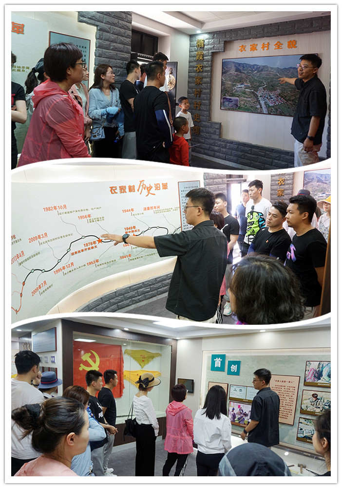 木耳采摘活动结束后,大家来到衣家村史馆,跟随着讲解员的介绍,一起了解衣家村发展的先进事迹,回顾村里那段修路打井的艰苦奋斗岁月。