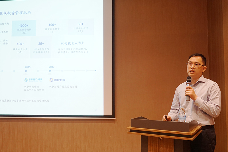 在专家分享环节,杏泽资本管理合伙人陈海刚就国内外生物医药行业发展现状、行业投资情况等详细分析了生物医药行业投资特征、风险及策略,结合疫情和后疫情时代的影响,分享探讨了杏泽资本在生物医药领域的投资逻辑,即着眼于早期孵化投资,坚持长期陪伴企业成长。