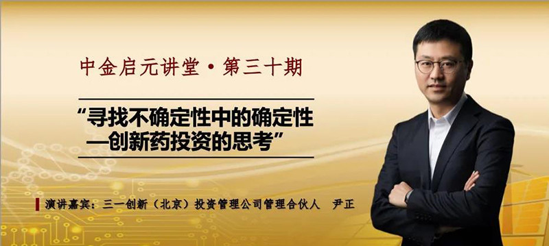 医药产业要实现快速发展,技术创新是核心,研发团队是关键,金融资本则是催化剂,合理的资金配置和高效的资金投入,能够加速创新药的上市进程,灵活的基金投资布局与合理的投资组合设计,可以对冲投资风险。生物医药行业区别于其他行业,有其独特的发展模式和投资要求,创新药的投资具有高投入、高风险、高回报且周期长的特征,这也代表了创新药投资的不确定性,此次尹正博士在中金启元讲堂特别提到了投资创新药领域应关注的关键点、风险点及投资价值研判依据,有效帮助投资者从创新药项目开发中的不确定性寻找股权价值增长的确定性,把握机遇投资布局创新药赛道,提升团队的投资能力。