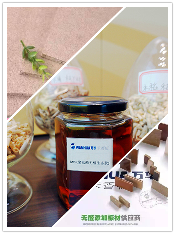 除了换原料,万华禾香板在生产过程中还换了胶,这让困扰国内人造板材甲醛超标的顽疾得以重大突破。与传统人造板材不同,万华禾香板采用企业独有且拥有自主知识产权的聚氨酯粘合剂加工而成,替代了板材中常用的脲醛树脂胶粘剂,结束了人造板材必然释放甲醛的历史。
