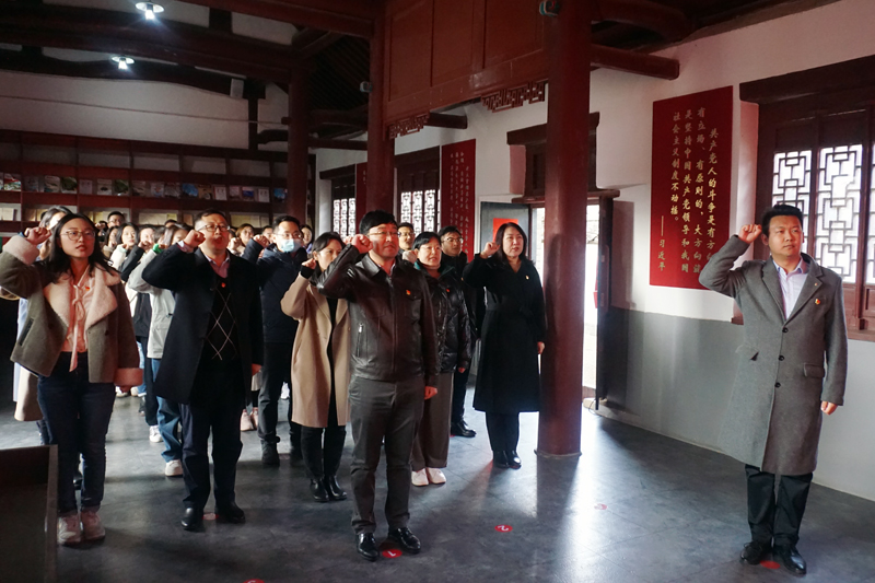 最后,全体党员沐浴着革命先辈的光辉,向着党旗共同宣誓,重温入党誓词。