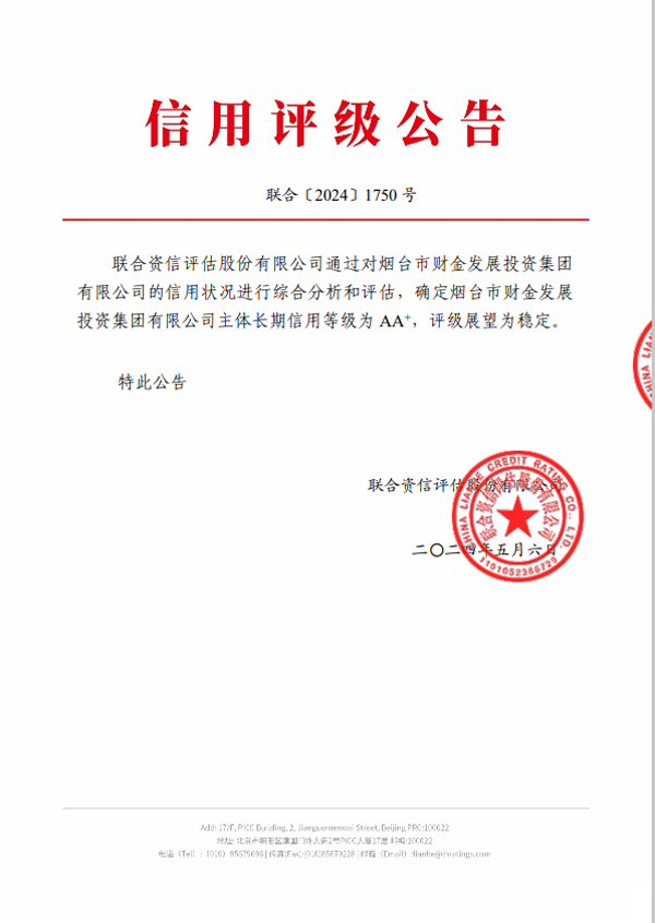 此次,集团信用评级提级升档,是资本市场对yl23455永利集团官网集团综合实力、经营管理水平、偿债能力和发展前景的高度认可,标志着集团资本运作能力迈上新台阶。近年来,集团为持续深化国资国企改革,进一步提高企业资信能力,有效降低融资、发债成本,通过“盘存量、拓增量、提质量”,为信用评级提升、资本运作能力提级奠定扎实基础,护航集团各项业务稳健发展。烟台市属国有企业优化整合以来,集团进一步聚焦主责主业,提出“1123”总体发展思路和3-5年战略规划,强化财金联动和生态协同,提振资本市场及投资者对烟台区域未来发展的信心,加力提效赋能全市经济高质量发展。