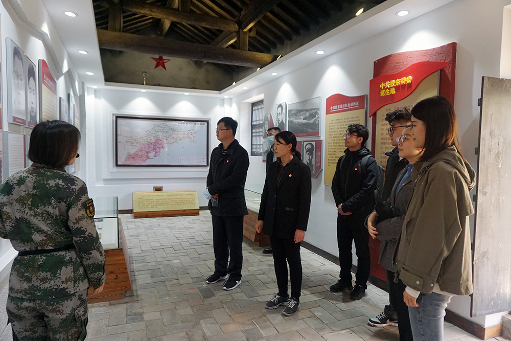 在昆嵛山革命纪念馆门前,全体党员排列整齐,庄严肃立,在领誓人的带领下,大家一起重温了入党誓词。随后,跟随昆嵛山红色教育基地讲解员,一同进入纪念馆参观学习。透过陈列着革命老物件和珍贵照片,大家了解到中共胶东特委诞生,胶东人民革命武装发祥,胶东人民兵工发源,昆嵛山驻军相关战斗和建设的历程,看到了以于得水为首一批共产党人领导了的“一一?四”武装暴动,开启了昆嵛山游击战,山东人民抗日救国、胶东革命武装等革命斗争。大家认真聆听讲解,无不为英雄们伟大的革命精神所感动。