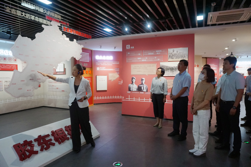 在胶东根据地工运陈列馆,大家参观学习了“英雄的胶东和胶东工人”“兵工奇迹”“众志成城”“翻身解放”“时代传承”五大展区,认真观摩重要历史照片、文物以及视频资料,了解了胶东工人为创建胶东根据地所建立的丰功伟绩。