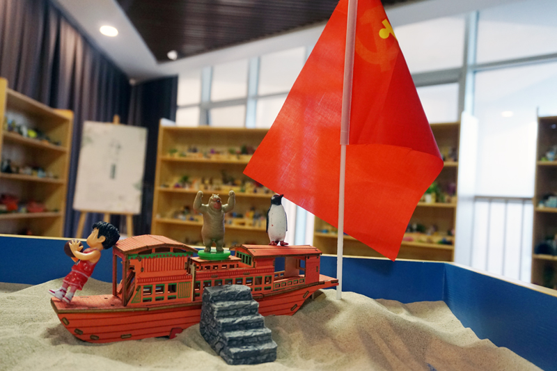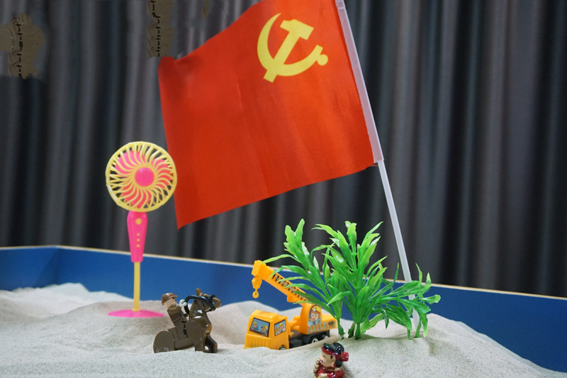 随后,在沙盘师的引领下,大家共同感受了一堂生动的红色教育主题沙盘体验课。通过沙盘创作过程的分享,大家在沙盘游戏中回顾入党初心,分享红色故事,一起在沉浸式课堂中感受峥嵘岁月。