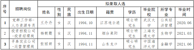 按照2020年8月28日发布的《2020年yl23455永利集团官网集团面向“双一流”和全球TOP200高校毕业生公开招聘简章》相关规定,经过简历收集、资格审查、初试、复试、集体决策等环节,拟确定部分岗位录取人选(详见下表),现予以公示,公示期为5个工作日(11月10日至11月17日)。