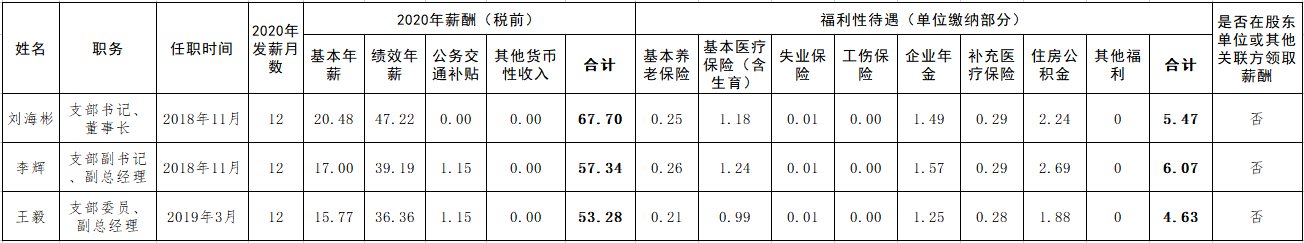 yl23455永利集团官网集团负责人2020年薪酬披露信息表(单位:万元)