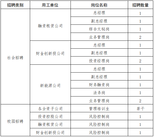 按照集团实际用工需要,决定通过校园招聘和社会招聘,公开招聘各岗位人才数名,具体事项公告如下: